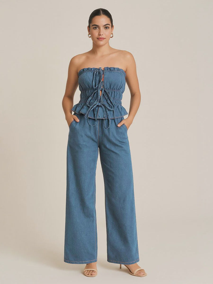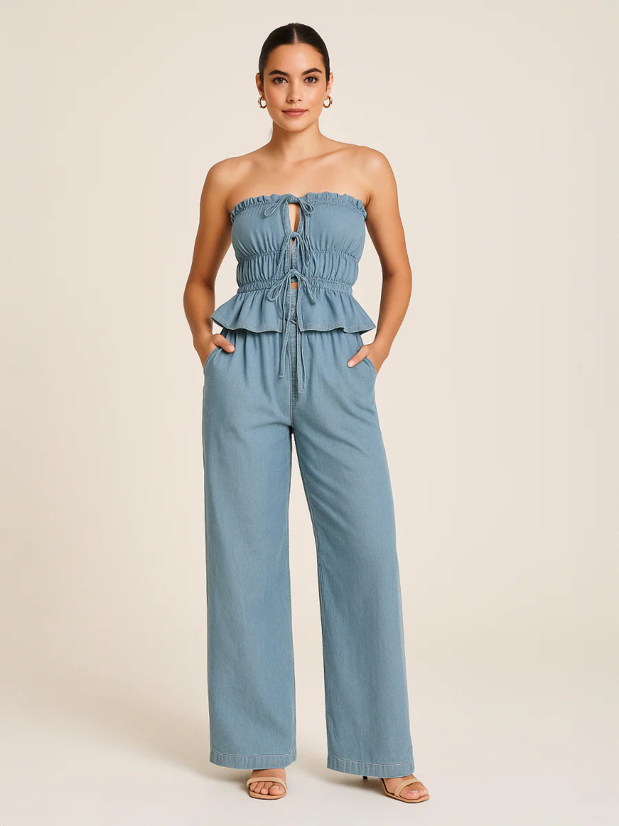 Chambray Button Through Sleeveless Top and Trouser Co-ord
